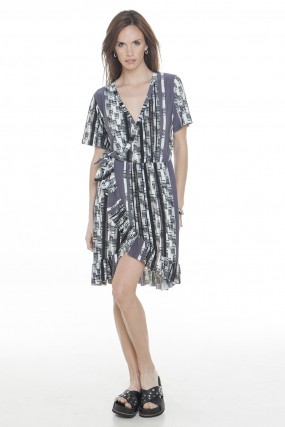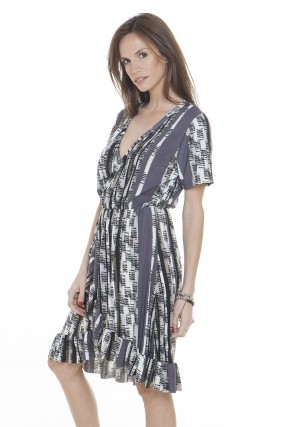 Vestido cruzado seda fria estampado.